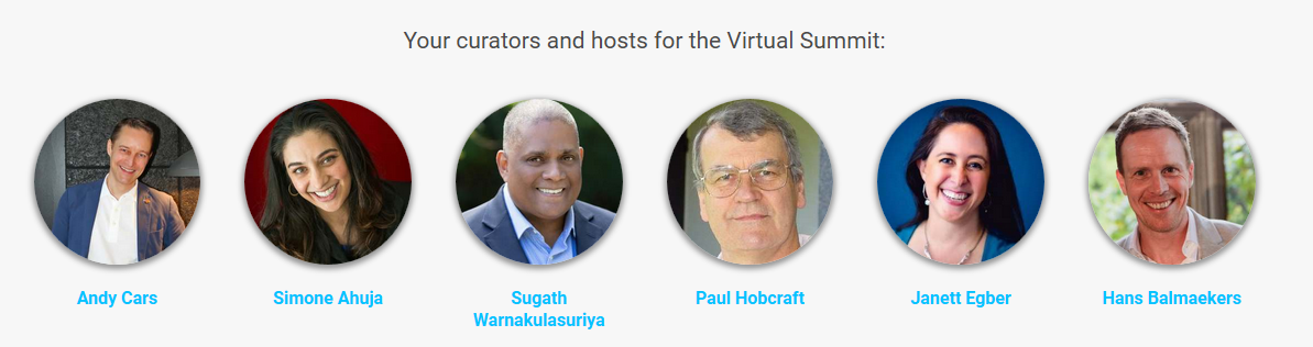 So there is an innovation virtual summit about to happen between 28th November 2017 and 8th December 2017. Each day you can watch for free the different video sessions, with new video sessions released on a daily basis. The final schedule will be sent by email after your registration.