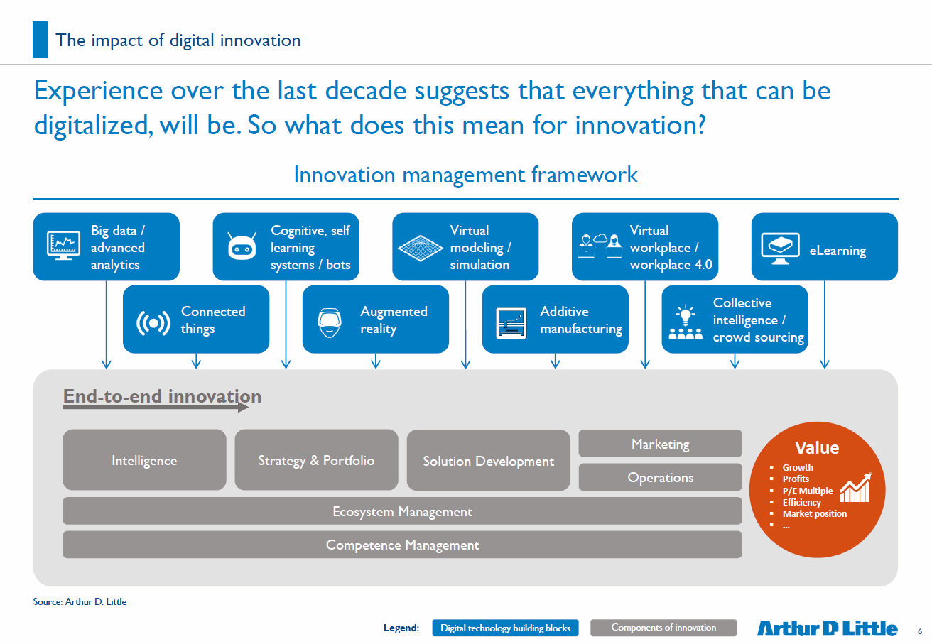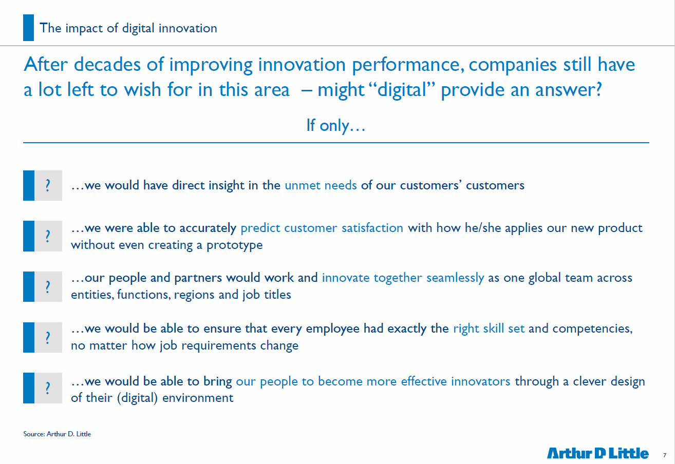 I just want to highlight four visuals from the Arthur D Little (ADL) report that makes the connection of digital and innovation stand out as a place we all must go, as soon as possible. Arthur D Little have copyright to all the visuals shown here.