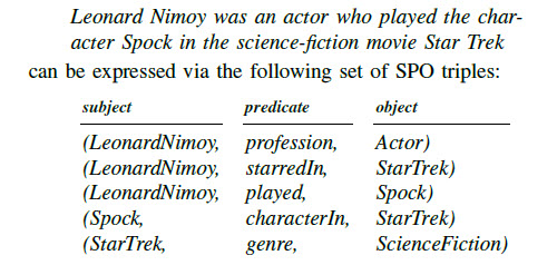 It is the existence of a triple SPO indicates an existing fact. It is when we combine multiple SPO’s we form multiple graphs. Here it is nodes that represent entities (all subjects and objects) and directed edges represent relationships and where they ‘point’ builds the knowledge graph. Each SPO is a (stand-alone) fact. So we begin to build a Knowledge Graph as the above example shows.