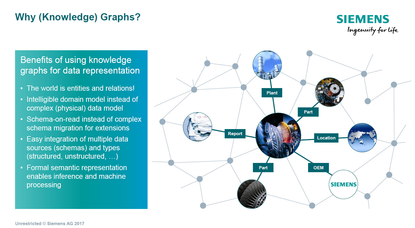 Let me give you an outline of benefits of why Knowledge Graphs – seen by Siemens